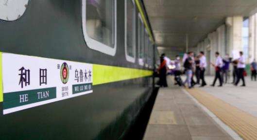 6月16日,和若铁路首趟列车缓缓驶出新疆和田火车站。新华社记者 丁磊 摄