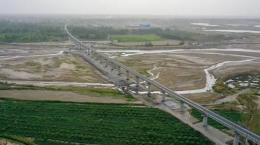 这是5月19日拍摄的和若铁路依木拉克特大桥(无人机照片)。新华社记者 丁磊 摄