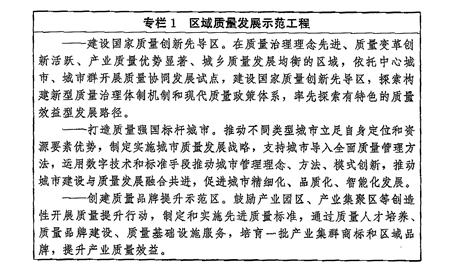 (八)提升产业集群质量引领力。支持先导性、支柱性产业集群加强先进技术应用、质量创新、质量基础设施升级,培育形成一批技术质量优势突出、产业链融通发展的产业集群。深化产业集群质量管理机制创新,构建质量管理协同、质量资源共享、企业分工协作的质量发展良好生态。组建一批产业集群质量标准创新合作平台,加强创新技术研发,开展先进标准研制,推广卓越质量管理实践。依托国家级新区、国家高新技术产业开发区、自由贸易试验区等,打造技术、质量、管理创新策源地,培育形成具有引领力的质量卓越产业集群。