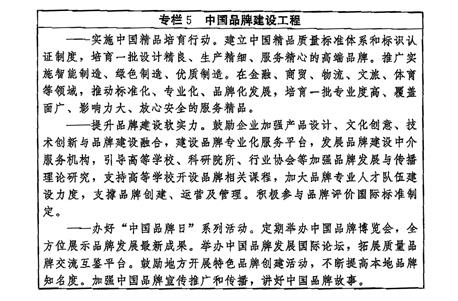 ——品牌建设取得更大进展。品牌培育、发展、壮大的促进机制和支持制度更加健全,品牌建设水平显著提高,企业争创品牌、大众信赖品牌的社会氛围更加浓厚,品质卓越、特色鲜明的品牌领军企业持续涌现,形成一大批质量过硬、优势明显的中国品牌。