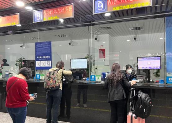 香港西九龙站采用“一地两检”通关模式。无论从哪个车站进站,旅客直接上车即可。抵达香港西九龙站后,再进行出、入境通关程序。