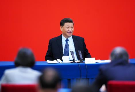 2020年5月23日,习近平总书记看望参加全国政协十三届三次会议的经济界委员,并参加联组会,听取意见和建议。