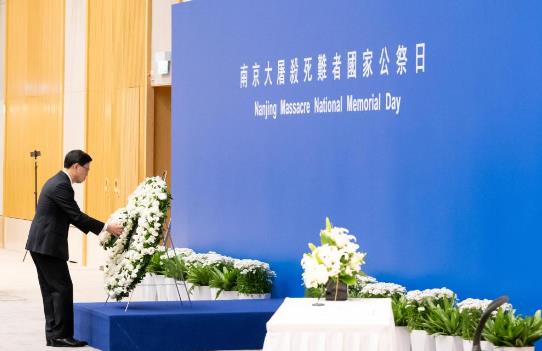 12月13日,香港特区行政长官李家超在公祭仪式上致献花圈。新华社记者 朱炜 摄