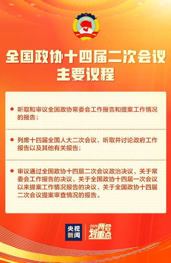 全国政协十四届二次会议4日下午开幕 会期6天 主要议程发布