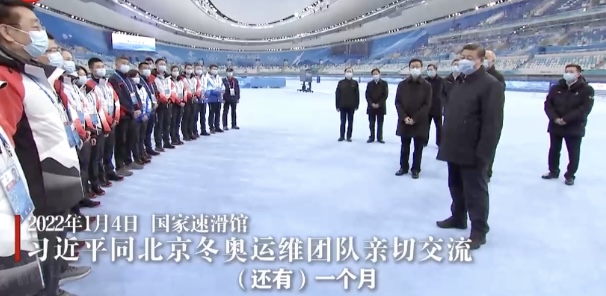 1月4日的考察中,习近平第一站来到国家速滑馆。这是五次冬奥考察中第三次首站看比赛场馆。