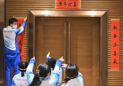 除夕早晨7点50分,北京外国语大学大二学生仇怡然准时来到北京冬奥村,进行新一天的志愿服务。晚上结束工作后,仇怡然回到驻地与同在闭环内的老师、同学一同欢度除夕。“今晚我们有写‘福’字、趣味猜谜、猜歌名、发红包等一系列活动。这是我第一次没跟父母一起过年,但能和小伙伴们在一起,也是另一种方式的团聚。”