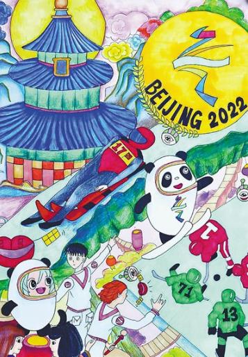 澳门濠江中学附属英才学校学生创作的绘画作品《冬奥会精彩瞬间》,被北京冬奥组委选中,作为特别礼物赠送给前来参赛的外籍运动员。(资料图片)