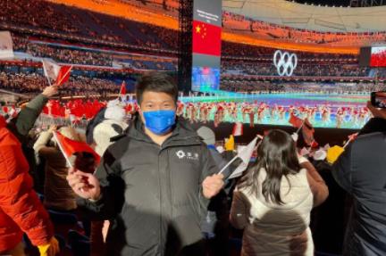 2月4日,台湾教师陈文成在“鸟巢”观看北京冬奥会开幕式。受访者供图
