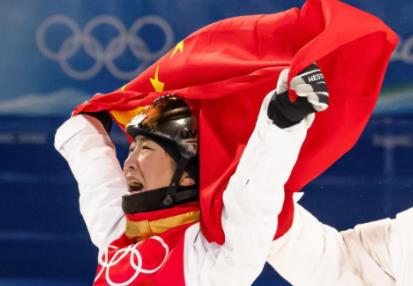 2月14日,中国选手徐梦桃在比赛后庆祝。当日,北京2022年冬奥会自由式滑雪女子空中技巧决赛在张家口云顶滑雪公园举行,中国选手徐梦桃夺得冠军。新华社记者 肖艺九 摄