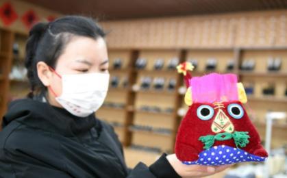 1月28日,在河北省平山县西柏坡镇北庄村电商直播助农惠农展销基地,工作人员展示特色商品。新华社记者 骆学峰 摄