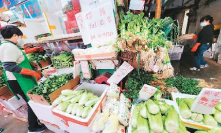 在内地有关部门与特区政府的推动及协调下,由内地运往香港的鲜活食品供应量正逐步恢复正常。图为近日在香港红磡,菜摊员工在整理蔬菜。新华社记者 王 申摄