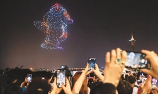 今年的表演现场互动颇具特色。观众可以透过AR科技,利用智能手机镜头对无人机图案进行AI智能识别,实现与无人机表演的互动,借此丰富来澳旅客的“旅游+科技”体验。
