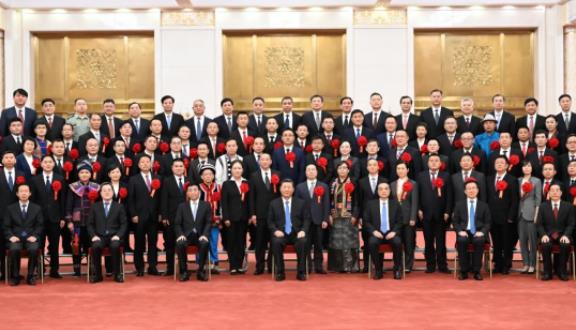 25日上午,习近平等来到人民大会堂北大厅,全场响起热烈掌声。习近平等走到代表们中间,同大家亲切交流并合影留念。