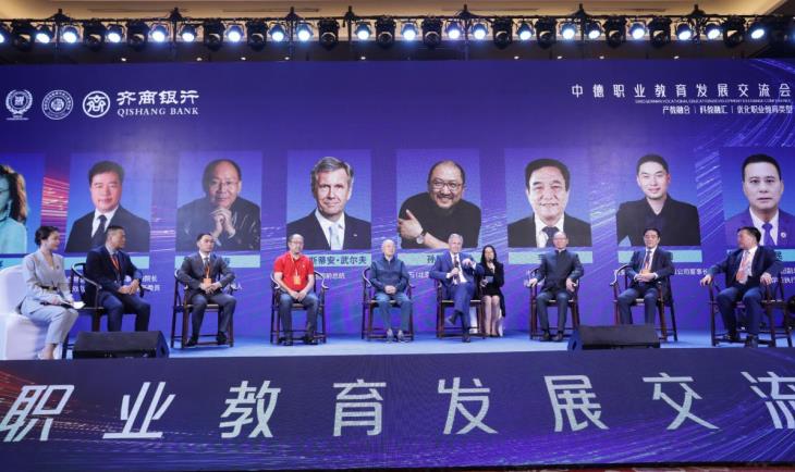 圆桌对话环节,全球中小企业联盟主席、2022年度中国友谊奖获得者克里斯蒂安·武尔夫,陕西省委统战部原副部长、著名文化学者王家春,德标基石(北京)教育科技公司董事长孙志成,中国民办教育协会高等教育专业委员会常务副理事长李维民,西安市职业教育与成人教育协会专家委员会主任委员刘金田,西安绩佳教育科技有限公司董事长窦向阳,陕西宇民教育集团副总裁、西安铁道职业学校执行校长刘爱民,围绕“西安和德国职业教育特点及产教融合、科教融汇、优化职业教育类型”展开了热烈的讨论,共同为职业教育事业汇智献策、共谋发展。