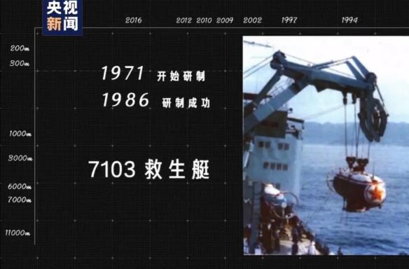中国第一艘载人潜水器——7103救生艇研制成功。虽然它只能下潜300米,航速也只有四节,但也是那个年代最先进的救援型载人潜水器。