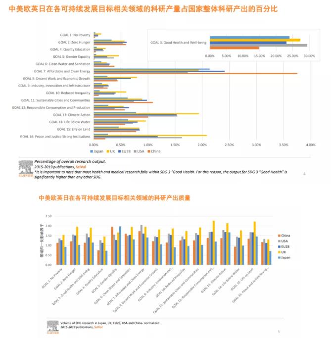 值得一提的是,中国在5个可持续发展目标领域的相关科研产出居全球第一。其中包括清洁饮水和卫生设施,经济适用的清洁能源,产业、创新和基础设施,可持续城市和社区,以及负责任消费和生产。