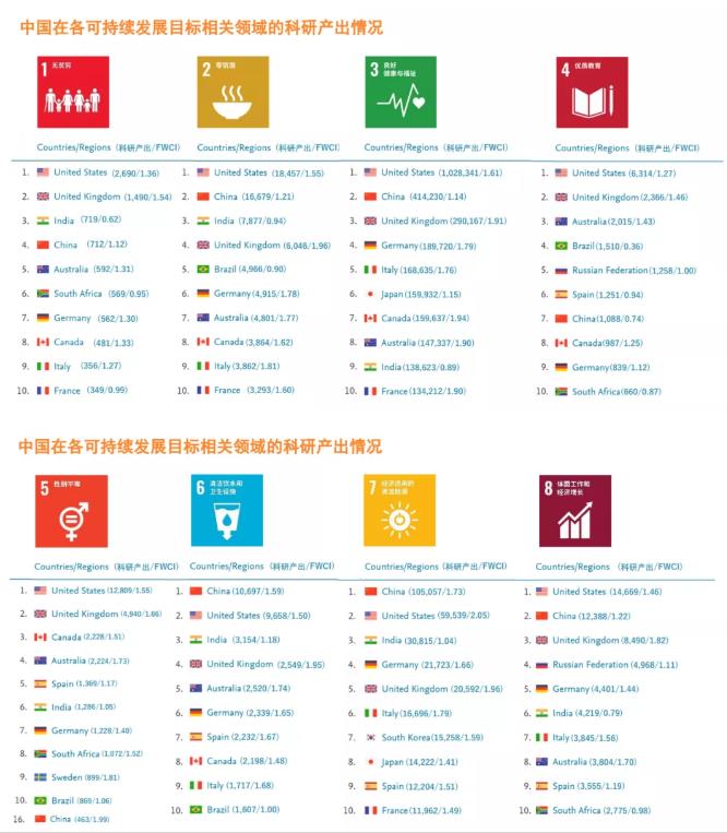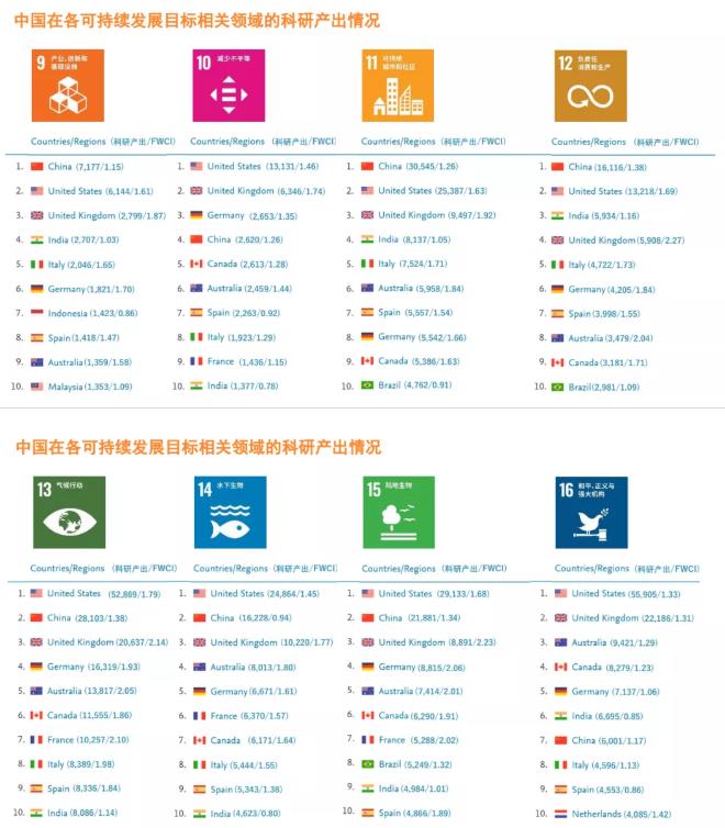报告显示,过去5年,中国在16个可统计的可持续发展目标领域中,有15个领域的相关科研论文数量位居全球前十;其中与5个可持续发展目标相关的科研产出居世界第一。