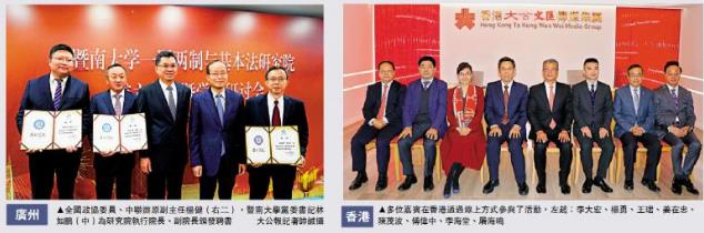 广东省人民政府港澳事务办公室副主任郑建民,香港中联办广东联络部一级巡视员管颂时等在暨大会场出席活动;香港中联办研究部副部长王珺,全国政协委员、香港大公文汇传媒集团董事长姜在忠,香港联合出版集团董事长傅伟中,香港紫荆杂志社长杨勇,香港紫荆杂志总编辑李海堂,香港大公文汇传媒集团总编辑李大宏等嘉宾在香港出席了活动。