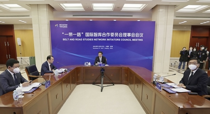 12月27日,“一带一路”国际智库合作委员会2022年理事会会议以线上线下相结合方式举行。新华社记者 邢广利 摄