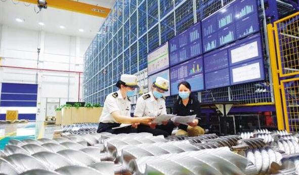 图为南京海关所属太仓海关关员辅导辖区内某空调企业建立符合“经认证的经营者”(AEO)标准关务系统,助力开拓RCEP制冷设备市场。杨泽浩摄