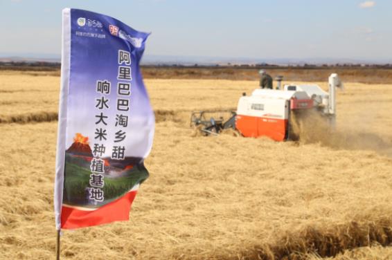 图说:黑龙江省牡丹江市的阿里巴巴响水大米种植基地,又到了收割季。