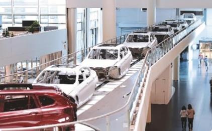 图为在华晨宝马沈阳铁西工厂,生产中的车辆穿过办公区。新华社记者 杨 青摄