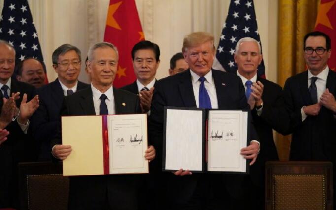 刘鹤与特朗普共同签署协议文本并致辞
