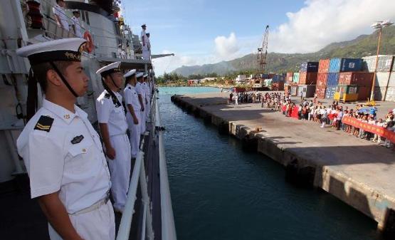 (2013年6月,哈尔滨舰抵达位于马埃岛的塞舌尔首都维多利亚,应塞政府邀请参加该国国庆阅兵)