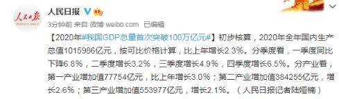 2020中国GDP首超100万亿元