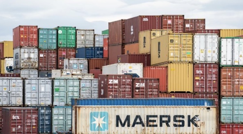 这是2021年10月26日在美国马里兰州巴尔的摩市港口拍摄的货运集装箱。(新华社记者刘杰摄)