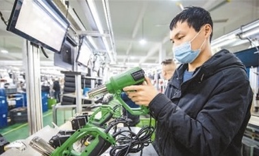 1月17日,在位于浙江省金华市金东区的浙江普莱得电器股份有限公司装配车间,工人正赶制外贸订单,生产热风枪产品。胡肖飞摄(人民视觉)