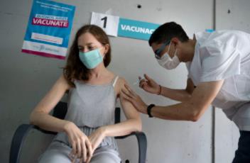 2021年3月4日,在阿根廷布宜诺斯艾利斯省拉普拉塔市,医务人员为中学哲学教师卢西安娜·塞因费尔德接种中国新冠疫苗。新华社发(马丁·萨巴拉摄)