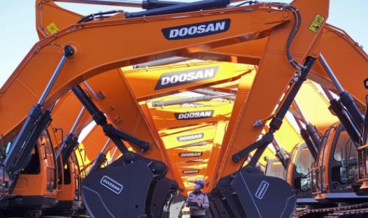 工作人员在山东烟台开发区一家工程机械有限公司检查出厂机械设备(1月17日摄)。新华社发(唐克 摄)