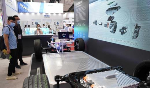 这是在第130届广交会上拍摄的比亚迪刀片电池展台(2021年10月15日摄)。新华社记者 邓华 摄