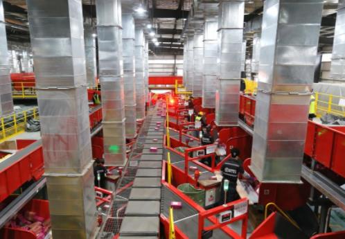 2021年11月7日,在青岛顺丰华骏分拨中心,全自动智能分拣系统分拣包裹。新华社发(梁孝鹏 摄)