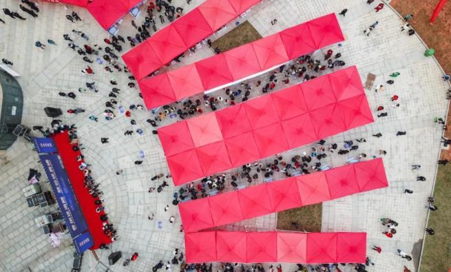 这是3月10日在长沙望城经开区铜官工业园拍摄的招聘活动现场(无人机照片)。新华社记者 陈泽国 摄