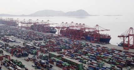 2021年11月3日拍摄的上海洋山港集装箱码头(无人机照片)。(图片来源:新华社)