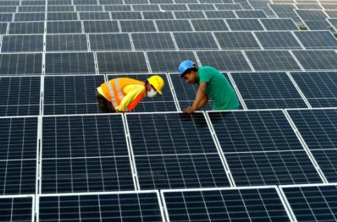 2021年1月3日,在位于孟加拉国首都达卡郊区的利德成集团厂区,工人们在房顶组装光伏模组。从2020年开始,中资制衣类企业——利德成集团在其位于孟加拉国达卡的厂区内建设光伏电站,以降低对传统能源的依赖,减少碳排放,从绿色发展的角度助力“一带一路”建设。(图片来源:新华社)