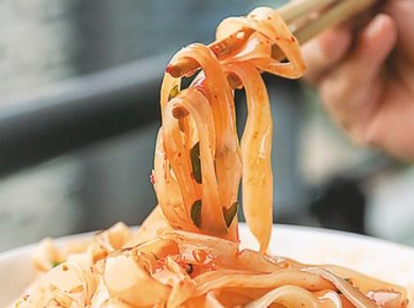 “是的。这是咱秦镇人盛夏季节最爱吃的美食,大米面皮。秦镇的米皮特色,筋、薄、细、穰,加上辣椒油,清香可口、咸盐淡醋……”秦镇米皮制作技艺传承人薛昌利回答。