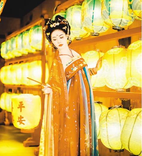 “身处现代,却仿佛穿越了盛唐的时光隧道。”西安大唐芙蓉园芙蓉画坊里,泰国驻西安总领事黄丽卿女士禁不住赞叹。她一边手提着充满浓郁唐风的灯笼,一边用手机记录仕女们的舞姿风采。