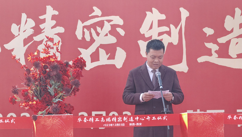 郭晓辉向项目的开工建设表示祝贺。他指出,产业是发展的根基,华圣精工高端精密制造中心的开工奠基,将进一步加速西安高新区现代产业体系壮大成势,为西安高新区高质量发展注入强劲动能。也将进一步筑牢西安高新区千亿级产业高地,有力助推“四个高新”跨越发展实现新突破。