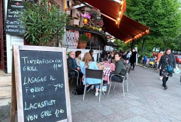 图为柏林的餐厅再度迎来用餐的顾客。中新社记者 彭大伟 摄
