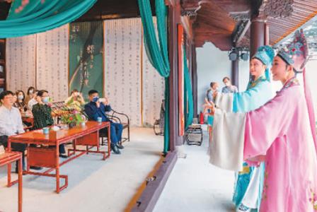 浙江省宁波市海曙区20名台胞和市民代表,近日受邀来到月湖之畔,通过赏越剧、观青瓷以及缝香囊、包粽子等方式,品味宁波非遗文化、交流两岸端午民俗,感受传统节日魅力,共叙血脉亲情。图为两岸同胞共同欣赏越剧表演。