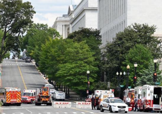 图为美国会大厦南侧的独立大道被封锁。中新社记者 陈孟统 摄