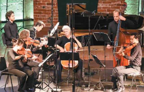 近日,张海鸥(左四)与当地音乐家合奏演出。