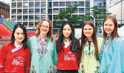 法兰克福第二届“中国节”上,身着中国传统服饰的各国女孩。
