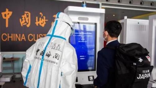 资料图:北京海关所属首都机场海关关员指导冬奥入境旅客使用健康申报验核一体机
