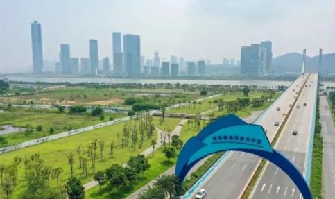 资料图:横琴大桥前的横琴粤澳深度合作区标志