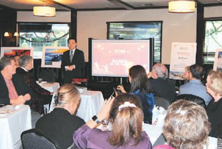 中国驻洛杉矶旅游办事处主任吴大伟、洛杉矶会议和旅游局副局长派特·麦克珍妮特以及旅行商、航空公司等负责人出席在好莱坞举办的河北文化和旅游推介会。