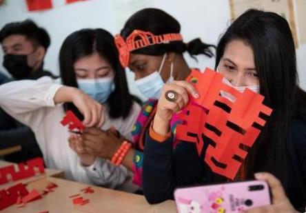 当天的春节文化讲堂活动现场,留学生们共话中国年、共抒团圆诗、共剪一窗花、共书中国情,了解中国传统文化习俗,感受中国风土人情。